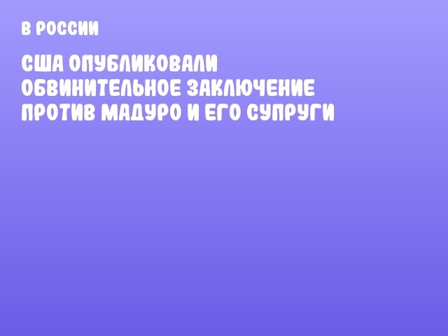 США опубликовали обвинительное заключение против Мадуро и его супруги Генпрокурор США Пэм Бонди опубликовала обвинительное заключение против президента Мадуро и его супруги. Текст на X. мадуросшапрезидентбондивенесуэлаxобвинениесуд — 03.01.2026 18:34 28 Biol Комментарии Нет комментариев. Ваш будет первым! Войдите или зарегистрируйтесь чтобы добавлять комментарии Другие новости: Израиль поддержал операцию США по аресту Мадуро в Венесуэле: Надежда на демократию Гутерриш предупреждает: операции США в Венесуэле угрожают стабильности в регионе Атака США на Венесуэлу: Китай больше пострадает, чем Россия из-за нефти Ильхам Алиев прибыл в США для рабочих переговоров Путин и Трамп начинают переговоры на Аляске